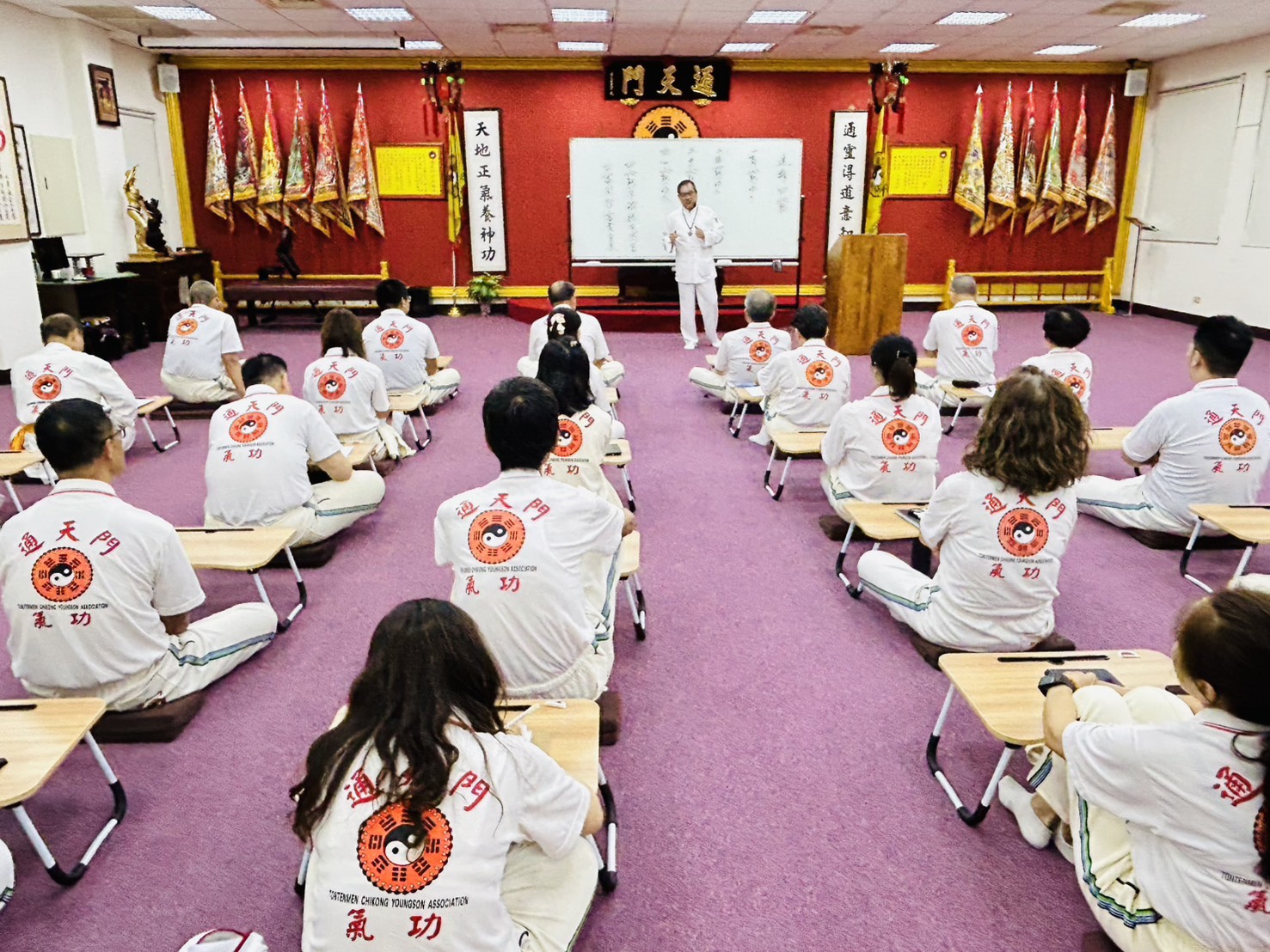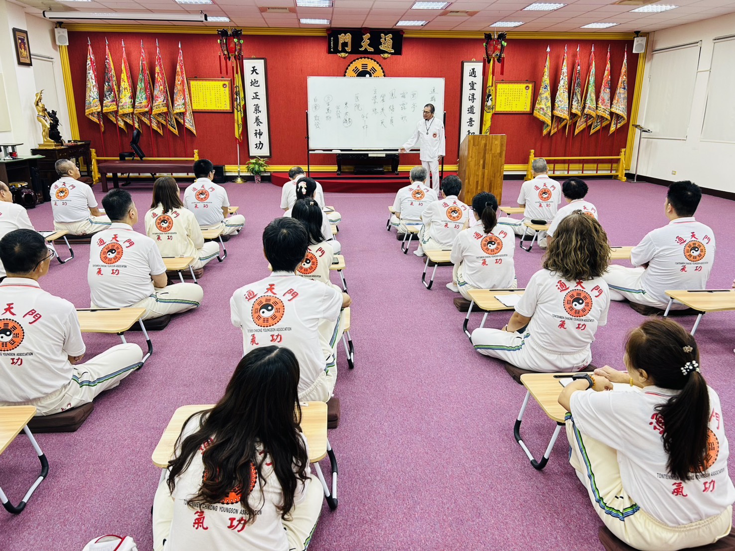114年10月31日 台中館週五A、B班 第一堂課/氣功功法 第二堂課/師尊傳法1.心法課 遠離四窮之人2.姓名學 名字字義、字音、字體、及五行之含意。