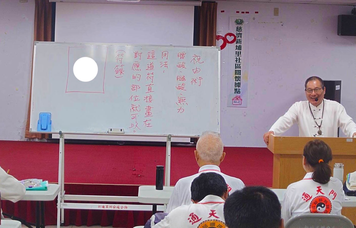 114年11月15日 北桃館 週六A班 第一堂課/氣功功法 第二堂課/師尊傳法 (一)心法課 何謂魑、魅、魍、魎、妖、魔,鬼、怪 (二)玄學(祝由術)1停車位 2腰酸、腿酸、無力 3靜脈曲張