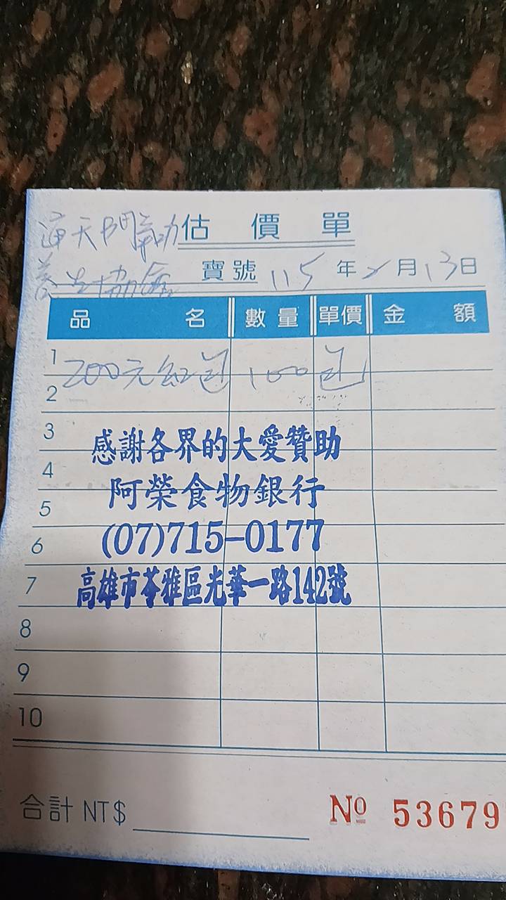 社團法人 通天門氣功養生協會115年2月13日(五) 高雄館送愛心物資至食物銀行活動